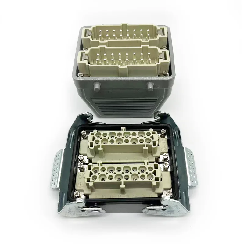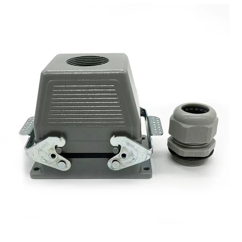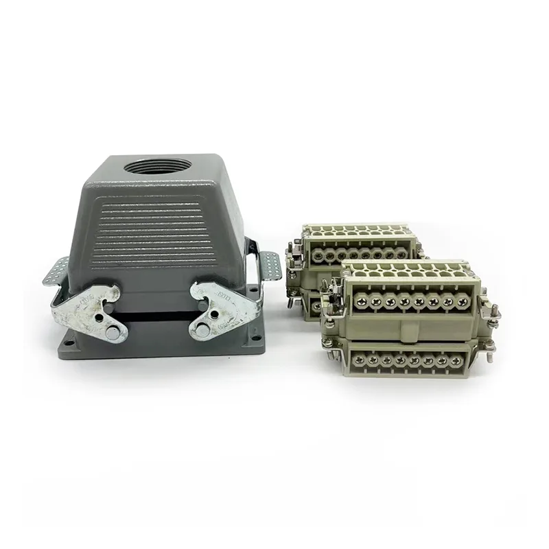 32 పిన్ TG హెవీ డ్యూటీ కనెక్టర్లు పురుషుల టాప్ హౌసింగ్ భాగం .ఇది పురుషుల ఇన్సర్ట్ భాగాలు లేదా ఆడ చొప్పించే భాగాలతో పని చేయాలి. సాధారణంగా ఇది HE-016-M యొక్క రెండు ముక్కలతో పరిష్కరించబడుతుంది, అయితే HE-016-F యొక్క రెండు ముక్కలతో సమీకరించాలని కొంతమంది ప్రత్యేక కస్టమర్‌ల అభ్యర్థన. ఇది HSB-016 కోసం కూడా ఉంది. IP65 వాటర్‌ప్రూఫ్ ఫీచర్ దీన్ని బయట ఉపయోగించగలిగేలా చేసింది. 32 పిన్ TG హెవీ డ్యూటీ కనెక్టర్లు PG29తో సరిపోలాయి. కస్టమర్‌లు వేర్వేరు కేబుల్ గ్రంధి పరిమాణ అభ్యర్థనలను కలిగి ఉంటే, మేము అంగీకరించి ఉత్పత్తి చేయడానికి ఆర్డర్ చేయవచ్చు.