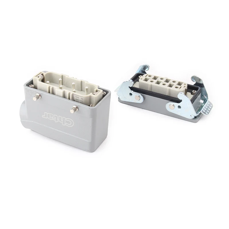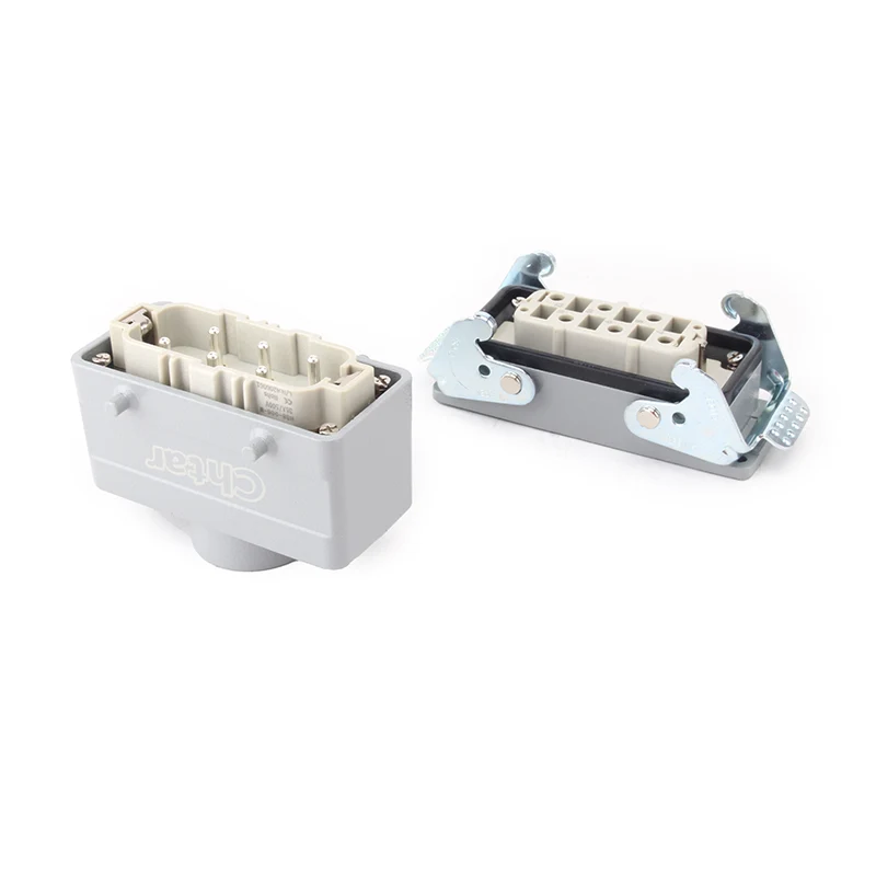 35A 6 పిన్ ఇన్సర్ట్ హెవీ డ్యూటీ కనెక్టర్ హెవీ డ్యూటీ కనెక్టర్ యొక్క H16B అల్యూమినియం హౌసింగ్ పని చేస్తుంది. ఇది బలం PC పదార్థం మరియు ఇత్తడి వెండి పూతతో తయారు చేయబడింది .CHTAR ఇత్తడి పిన్‌లు వెండితో పూత పూయబడ్డాయి, ఇది మంచి నాణ్యత మరియు మెరుగైన విద్యుత్ వాహకత. ఇది మంచి వాటర్‌ప్రూఫ్ ఫీచర్‌గా చేయడానికి సీల్ రబ్బరును కలిగి ఉంటుంది.