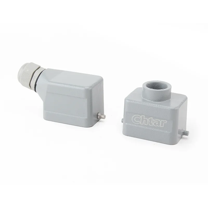 H6B కనెక్టర్ హౌసింగ్ భారీ-డ్యూటీ కనెక్టర్ పోర్ట్‌ఫోలియోలో ప్రామాణికమైన, అత్యంత బహుముఖ డిజైన్‌ను సూచిస్తుంది, పారిశ్రామిక ఆటోమేషన్, మెషినరీ మరియు కంట్రోల్ సిస్టమ్‌లలో విస్తృతంగా ఉపయోగించబడుతుంది. దీని లక్షణాలు మన్నిక, భద్రత మరియు వాడుకలో సౌలభ్యం కోసం రూపొందించబడ్డాయి. ప్రామాణిక పదార్థాలు UL94 V-0 జ్వాల-నిరోధక రేటింగ్‌లకు అనుగుణంగా ఉంటాయి మరియు నూనెలు, శీతలీకరణలు మరియు సాధారణ పారిశ్రామిక రసాయనాలకు మంచి ప్రతిఘటనను అందిస్తాయి.