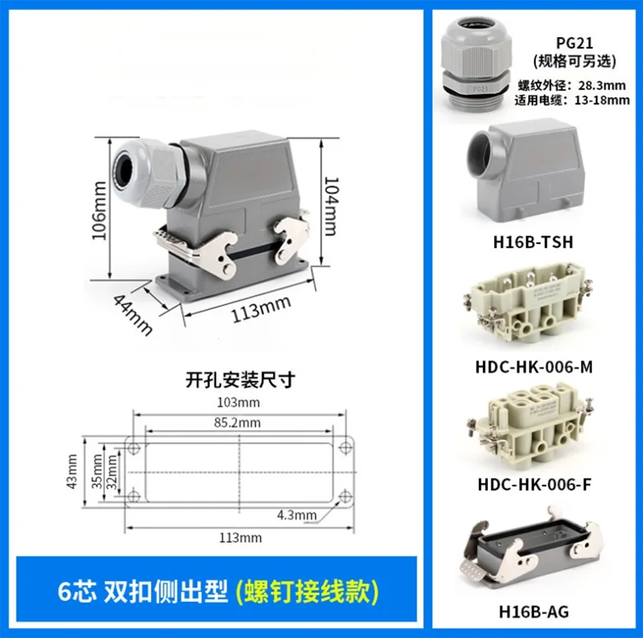 దయచేసి CHTAR సామర్థ్యాలను విశ్వసించండి. మేము చైనాలో ప్రముఖ సరఫరాదారు, మరియు మా అధిక-నాణ్యత 80A 4+2 పిన్ ఇన్సర్ట్ హెవీ డ్యూటీ కనెక్టర్‌లు 80A H16B-TSH హౌసింగ్ హెవీ-డ్యూటీ కనెక్టర్ హౌసింగ్‌కు అనుకూలంగా ఉంటాయి. ఇది అధిక బలం కలిగిన PC మెటీరియల్ మరియు 4 పిన్‌లతో తయారు చేయబడింది, H16B అల్యూమినియం కేసింగ్‌లో అసెంబుల్ చేయబడింది.