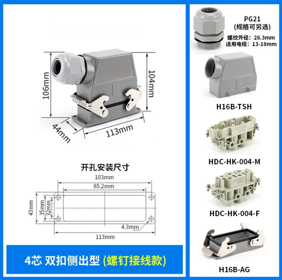 HK-004/0-M HK హెవీ డ్యూటీ కనెక్టర్లు 80A కరెంట్ కింద పని చేస్తున్నాయి. వైర్లతో సంప్రదించడానికి ఇది 4 పిన్స్. ఇది వివిధ పని పరిస్థితుల కోసం అందిస్తోంది మరియు ఆటోమేటిక్ పరిశ్రమలు మరియు మెషిన్ యొక్క వైరింగ్ కనెక్షన్ రకాలలో ప్రసిద్ధి చెందినది.