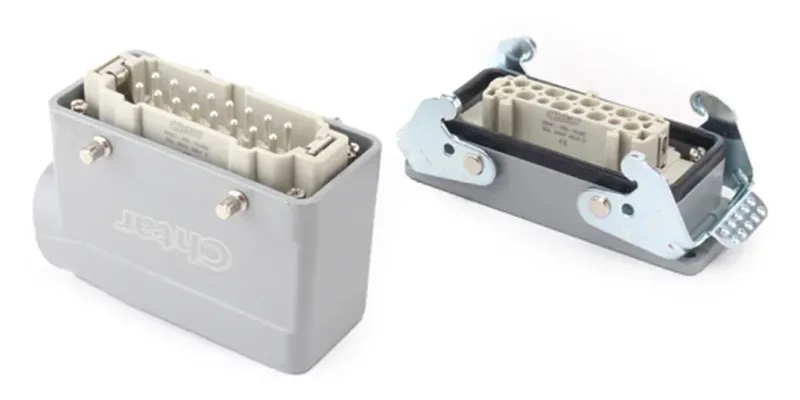 హెవీ డ్యూటీ కనెక్టర్లు అధిక ప్రవేశ రక్షణ రేటింగ్లు మరియు IP65. వారు ఒకే హుడ్లో పవర్, సిగ్నల్, డేటా, న్యూమాటిక్స్ మరియు ఫైబర్ ఆప్టిక్లను ఉంచగలరు. అవి ఇన్స్టాలేషన్ మరియు మెషిన్ మార్పు సమయంలో వైరింగ్ సమయాన్ని గణనీయంగా తగ్గిస్తాయి. అవి సురక్షితమైన లాకింగ్, స్పష్టమైన కోడింగ్, మరియు ఉన్నతమైన సంప్రదింపు సాంకేతికత వైఫల్యాలను నివారిస్తుంది. అవి ట్రబుల్షూటింగ్ లేదా మాడ్యూల్ రీప్లేస్మెంట్ కోసం త్వరిత డిస్కనెక్ట్ను ప్రారంభిస్తాయి.