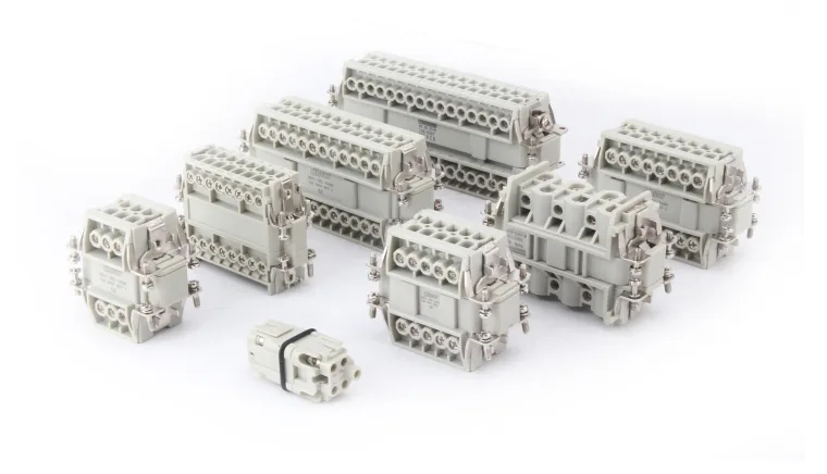 ఇన్సర్ట్ హెవీ డ్యూటీ కనెక్టర్ల ప్రయోజనాలు అధిక విశ్వసనీయత మరియు భద్రత, అద్భుతమైన కరెంట్ మోసే సామర్థ్యం, వైబ్రేషన్ మరియు షాక్ రెసిస్టెన్స్, సుదీర్ఘ సేవా జీవితం & అధిక సంభోగం చక్రాలు, ఇన్స్టాలేషన్ సౌలభ్యం మరియు నిర్వహణ మరియు ఫ్లెక్సిబిలిటీ డిజైన్. హెవీ డ్యూటీ కనెక్టర్ల ఇన్సర్ట్ టెర్మినల్ విభాగం కఠినమైన బాహ్య అల్యూమినియం హౌసింగ్ను తెలివైన, సౌకర్యవంతమైన మరియు అత్యంత విశ్వసనీయమైన ఎలక్ట్రికల్ ఇంటర్ఫేస్గా మారుస్తుంది. ఇది HDC యొక్క ప్రధాన ప్రయోజనాలైన విశ్వసనీయత, మాడ్యులారిటీ మరియు డిమాండ్ చేసే అప్లికేషన్లలో సులభంగా ఉపయోగించడాన్ని ప్రారంభించే కీలక భాగం.