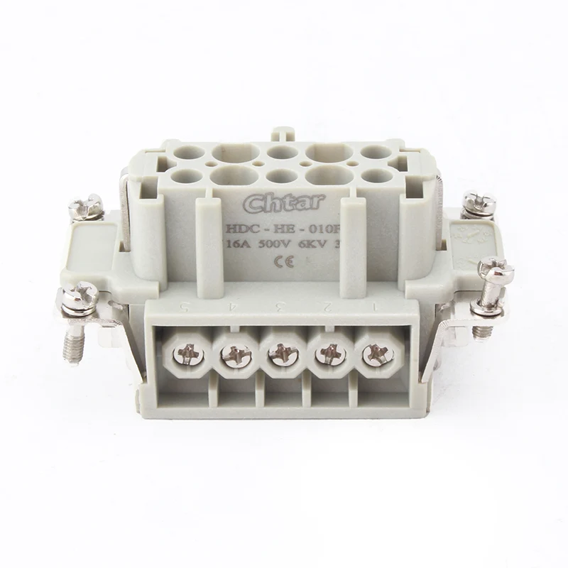 CHTAR యొక్క మన్నికైన M/F 10 పిన్ ఇన్సర్ట్ హెవీ డ్యూటీ కనెక్టర్ హెవీ-డ్యూటీ కనెక్టర్ యొక్క H10B హౌసింగ్‌తో కలిపి ఉపయోగించబడుతుంది. ఇది 10 పిన్‌లను కలిగి ఉంది మరియు 10 వైర్ల ద్వారా కనెక్ట్ చేయబడింది. అవి అధిక బలం కలిగిన PCతో తయారు చేయబడ్డాయి మరియు లోపల ఇత్తడి వెండి పూత పూసిన పిన్నులను కలిగి ఉంటాయి. చైనాలో మీ విశ్వసనీయ దీర్ఘ-కాల భాగస్వామిగా మారేందుకు మేము ఎదురుచూస్తున్నాము.