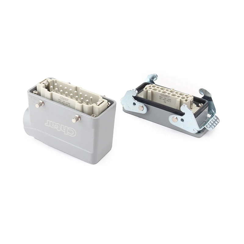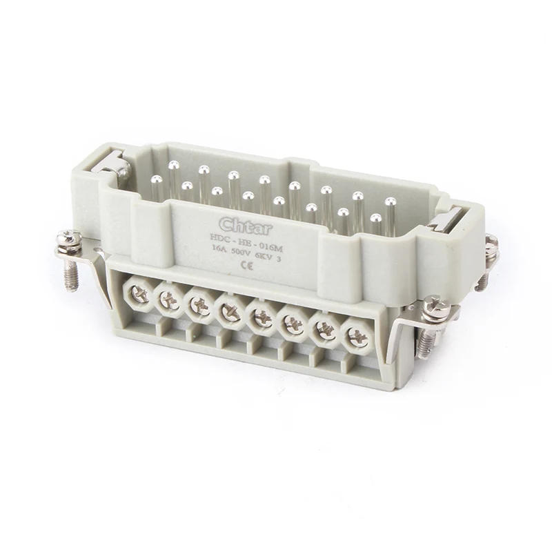 M/F 16 పిన్ ఇన్సర్ట్ హెవీ డ్యూటీ కనెక్టర్లు అల్యూమినియం హౌసింగ్ హెవీ డ్యూటీ కనెక్టర్‌లలో మౌంట్ అయ్యే భాగాలను చొప్పించండి HDC-HE-016 . ఇన్సర్ట్ హెవీ డ్యూటీ కనెక్టర్లు PC మరియు బ్రాస్ పిన్స్‌తో తయారు చేయబడ్డాయి. CHTAR ఇత్తడి పిన్నులు వెండి పూతతో ఉంటాయి. మగ మరియు ఆడ భాగాలు కలిసి కనెక్ట్ అవుతాయి. ఇది వాటిని IP65 రక్షణగా చేయడానికి హౌసింగ్ భాగంలో కూడా సమీకరించాలి.