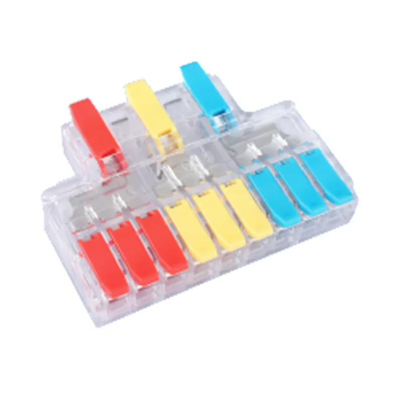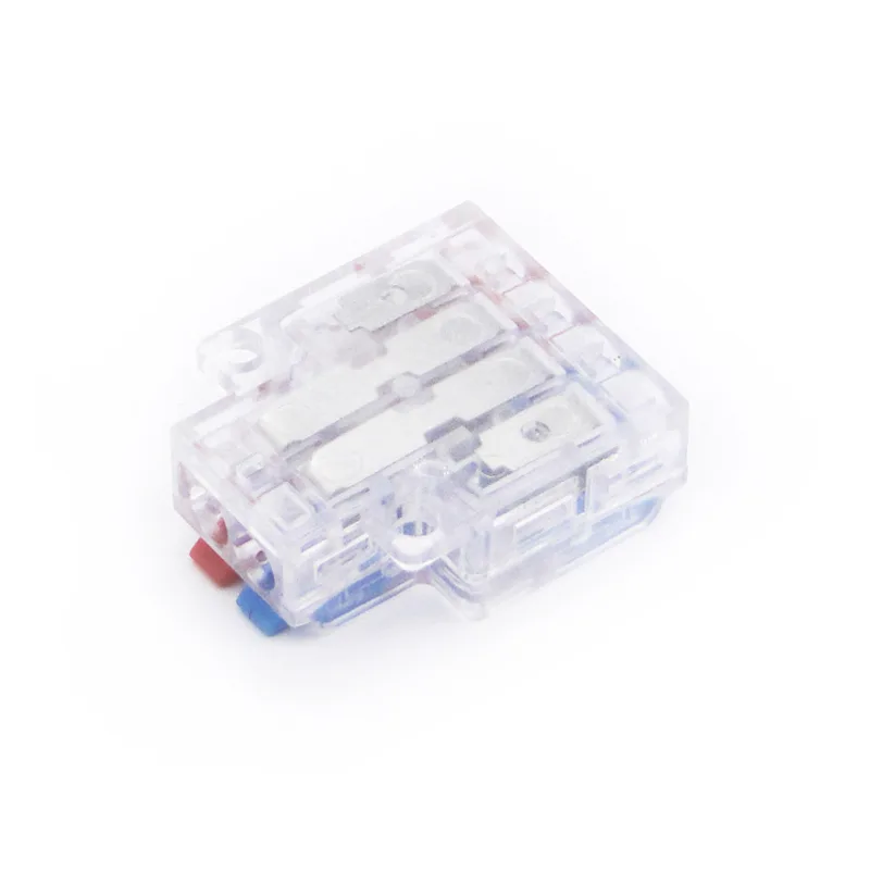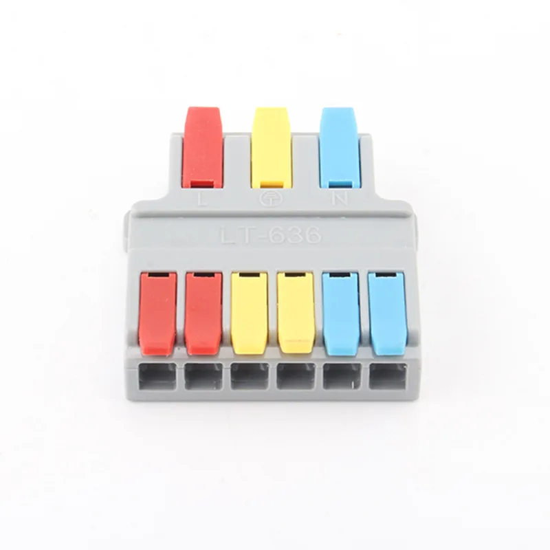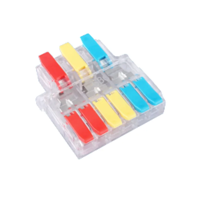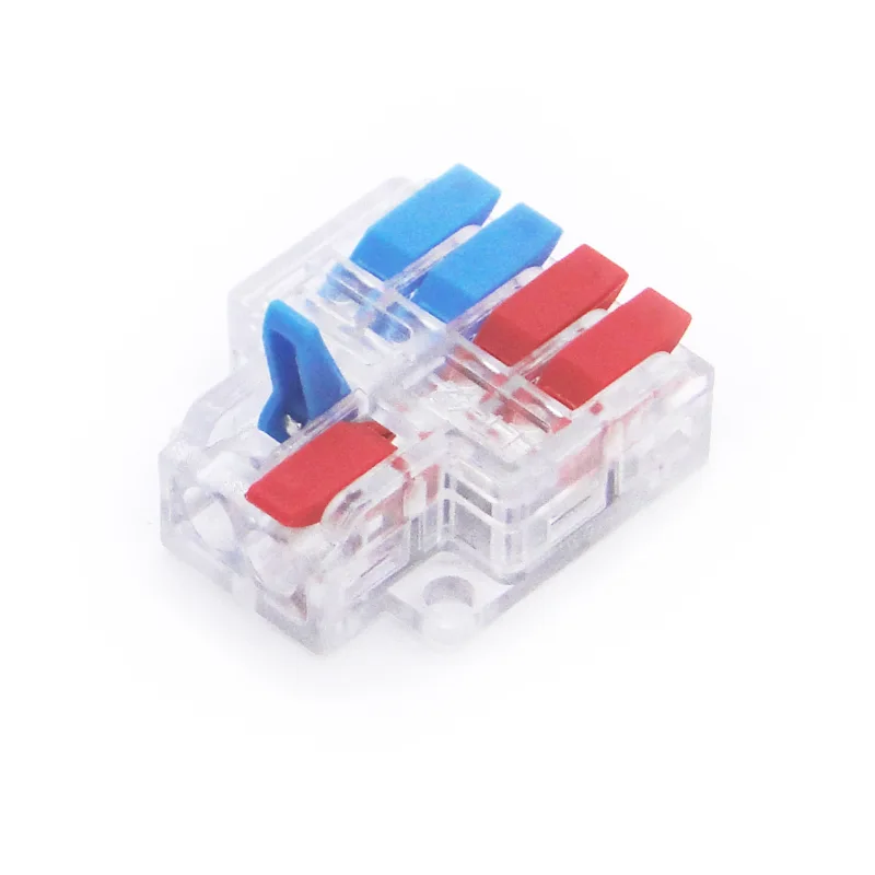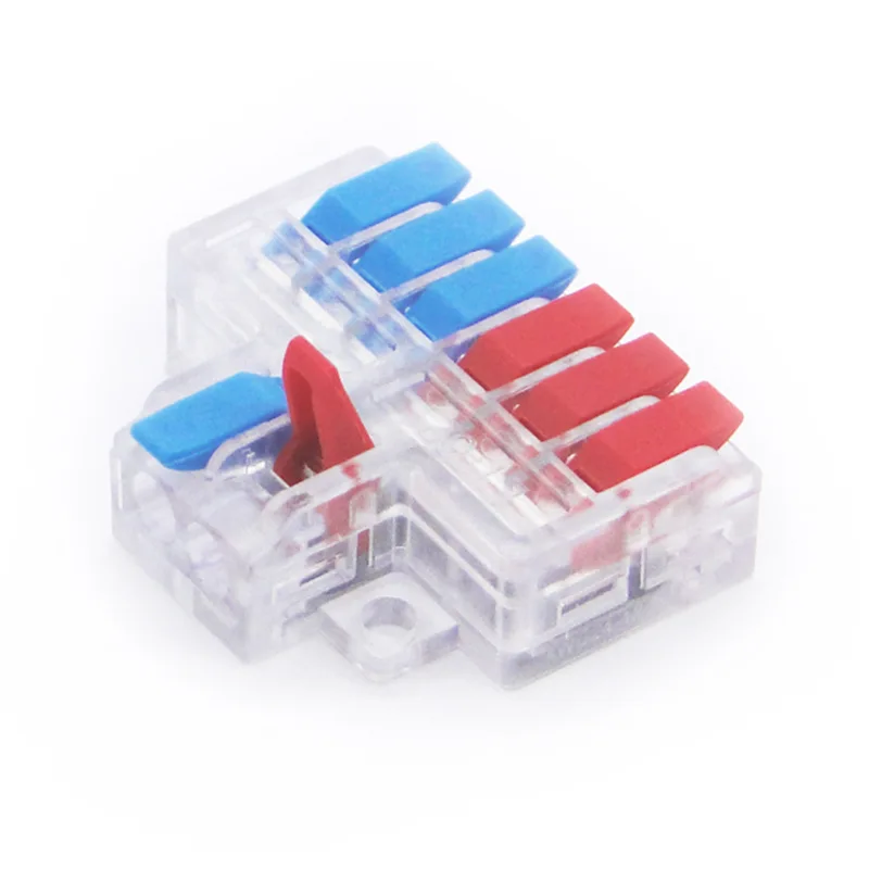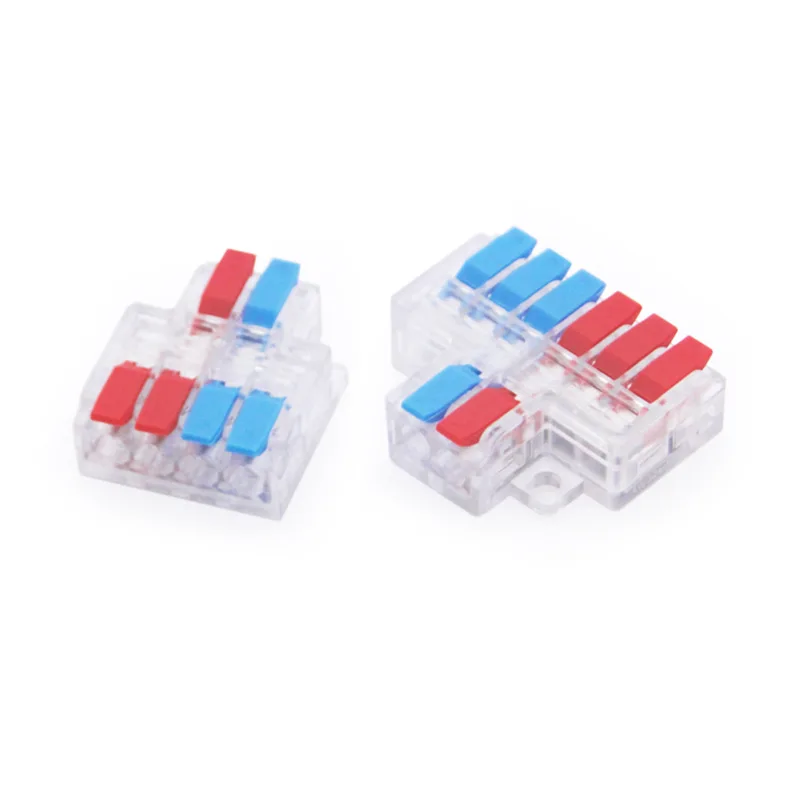 రెండు-ఇన్ ఫోర్-అవుట్ స్ప్లికింగ్ వైర్ క్విక్ కనెక్టర్‌లు పెద్ద-గేజ్ కేబుల్‌ల కోసం రూపొందించబడ్డాయి, 6 చదరపు మిల్లీమీటర్ల వరకు కనెక్షన్‌లకు మద్దతు ఇస్తుంది. ఇది 35 ఆంపియర్ల వరకు ప్రవాహాలను నిర్వహించగలదు. వైరింగ్ మార్గాలను స్పష్టంగా గుర్తించడానికి వారు వివిధ రంగుల హ్యాండిల్స్‌ను ఉపయోగిస్తున్నారు.