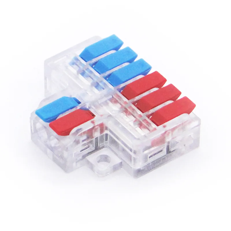 ఆధునిక ఎలక్ట్రికల్ మరియు ఆటోమేషన్ సిస్టమ్‌లలో, సర్క్యూట్‌ల కనెక్షన్ సంబంధాలు చాలా క్లిష్టంగా మారుతున్నాయి మరియు సాధారణ సమాంతర రేఖలు లేదా ఏకదిశాత్మక పంపిణీ ఇకపై డిమాండ్‌లను తీర్చలేవు. CHTAR యొక్క అధిక-నాణ్యత టూ-ఇన్ ఫోర్-అవుట్ స్ప్లిసింగ్ వైర్ క్విక్ కనెక్టర్లు, ఇవి మల్టీ-వైర్ ఇన్ మరియు మల్టీ-వైర్ అవుట్ స్ట్రక్చర్ కనెక్టర్‌లు, ఈ సమస్యలను పరిష్కరించగలవు. ఇది కనెక్ట్ చేసే వైర్ల పరిమాణం 0.5mm² నుండి 6mm² వరకు ఉంటుంది. ఈ సిరీస్ గరిష్టంగా 6mm²తో పెద్ద-పరిమాణ వైర్లను కలుపుతుంది. రెండు ఎంపికలు ఉన్నాయి: 2P మరియు 3P. ప్రధాన లైన్ 2P మరియు 3Pతో కాన్ఫిగర్ చేయబడింది, ఆపై రెండు లేదా మూడు సహాయక పంక్తులుగా విభజించబడింది. ఇది ఒకే ఫంక్షన్‌కు మించినది, ఇంజనీర్‌లు ద్వంద్వ విద్యుత్ సరఫరాల యొక్క అనవసరమైన సమాంతర కనెక్షన్, స్వతంత్ర సిగ్నల్ విభజన లేదా ఒకే భౌతిక నోడ్‌పై విభిన్న లైన్ల కలయిక మరియు ఏకీకరణను సాధించడానికి అనుమతిస్తుంది. ఇది సర్క్యూట్ యొక్క "క్రాస్‌రోడ్స్" వద్ద త్రీ-డైమెన్షనల్ ట్రాన్స్‌పోర్టేషన్ హబ్‌ను ఏర్పాటు చేయడంతో సమానం, శక్తి మరియు సంకేతాల ప్రసారాన్ని సాధ్యం చేస్తుంది!